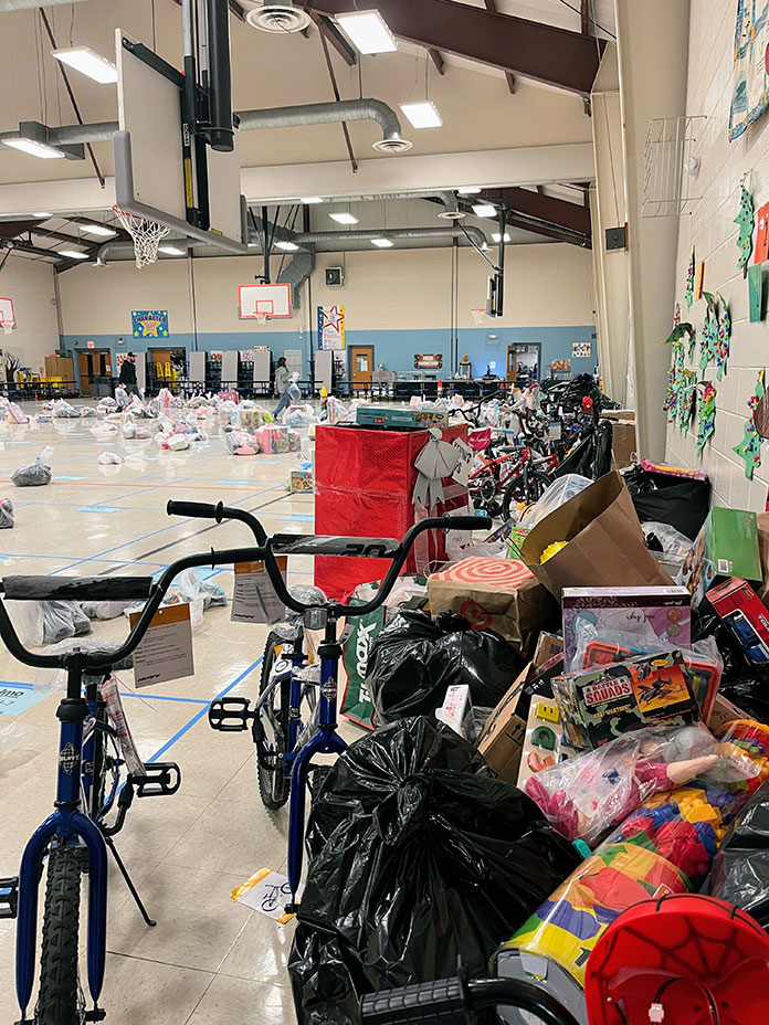 He added that lots of people play a role in Kevin’s Kids, whether it be fundraising by staff or local community organizations. School bus drivers volunteer to pick up and transport gifts while School Building and Grounds employees spend hours of their own time putting together toys and bicycles.