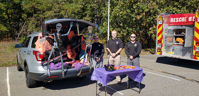 Nearby was Joan Guido of Manchester and David Monti of Toms River. Adults weren’t exempt from enjoying the festivities in costumes. Monti’s COVID-19 mask blended well with her skeleton costume. He was there to help the church with giving out snacks.
