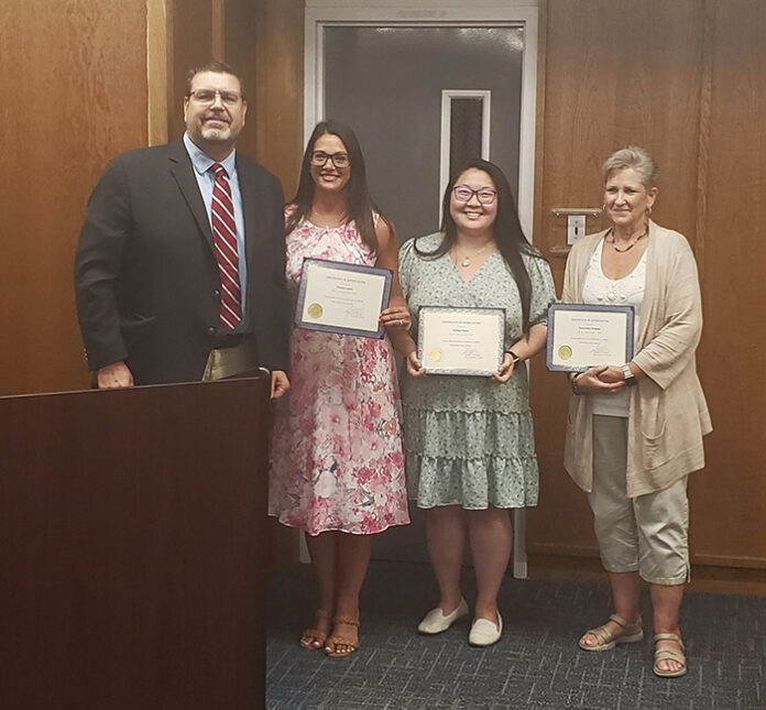 During the Township Council meeting, Recreation Department Director Tracey Lynch, Administration Assistant Caitlyn Sloan, and Office Manager Cassandra Colgate were summoned up before the dais to receive some certificates of appreciation for all their hard work in coordinating Manchester Day held earlier this summer.