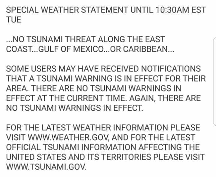 “AccuWeather has the most sophisticated system for passing on NWS tsunami warnings based on a complete computer scan of the codes used by the NWS. While the words “TEST” were in the header, the actual codes read by computers used coding for real warning, indicating it was a real warning,” the statement said.