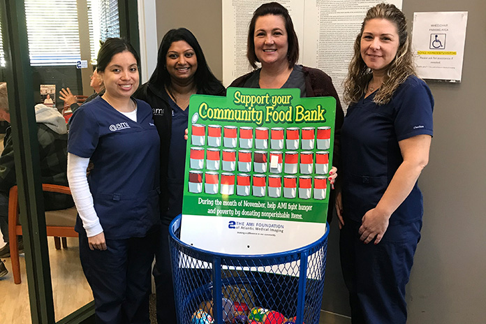 The Atlantic Medical Imaging (AMI) Foundation’s 11th Annual Food Drive took place throughout the month of November, bringing in 800 pounds of food donations to benefit the Community FoodBank of New Jersey-Southern Branch and Fulfill (the Food Bank of Monmouth & Ocean Counties).