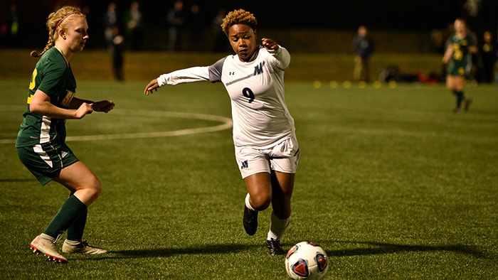 Moore was named the MAAC Rookie of the Week after erupting for five points on two goals and one assist in 44 minutes in a 9-0 dismantling of St. Peter’s University. They were her first career points for the Hawks. She netted her first goal on a bicycle kick on a bouncing ball in the box in the 41st minute and scored her second goal in the 86th minute on a left-footed blast from outside the penalty area to push the score to 9-0.