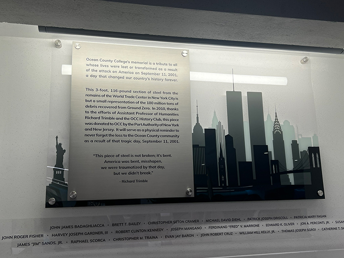 A permanent 9-11 tribute is now housed in the library, featuring a segment of steel from the World Trade Center. The memorial also lists the names of Ocean County residents who perished in the attacks, offering a place of reflection and honor for the community.