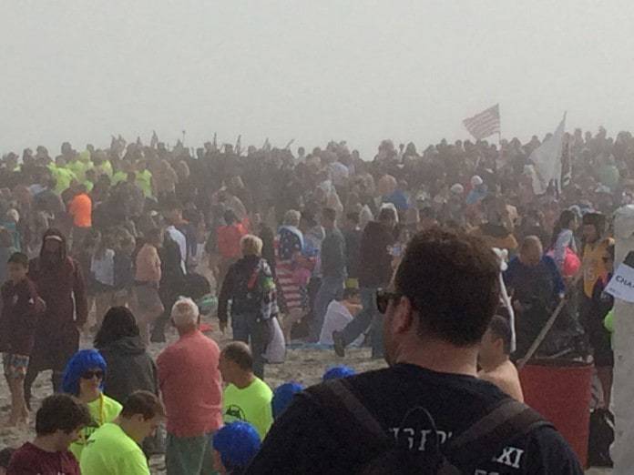 With crowds arriving around 9 a.m. to fog, the mid 50s air temperature helped to make for one of the milder plunges in a while. The water was around 45 degrees but that didn’t stop participants.