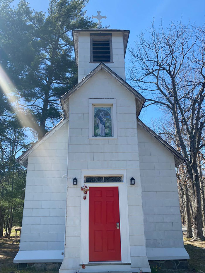 BROOKVILLE – Old Brookville Road winds past charming homes and a pristine pond to a tiny white church adorned with a bright red door at its center point.