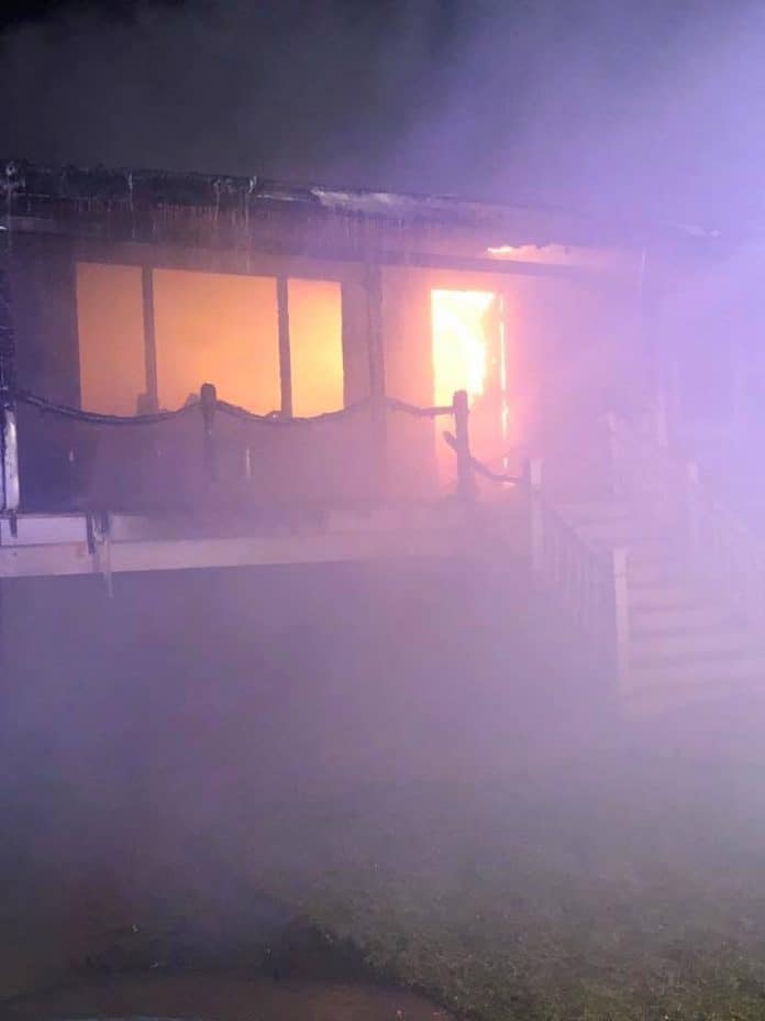 The fire broke out after 5 a.m. and quickly spread, engulfing the entire structure. None of the residents were injured but two pet cats died.