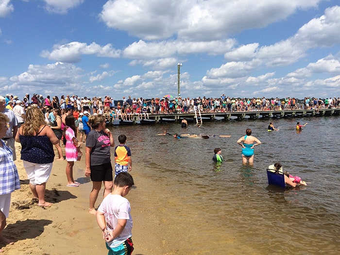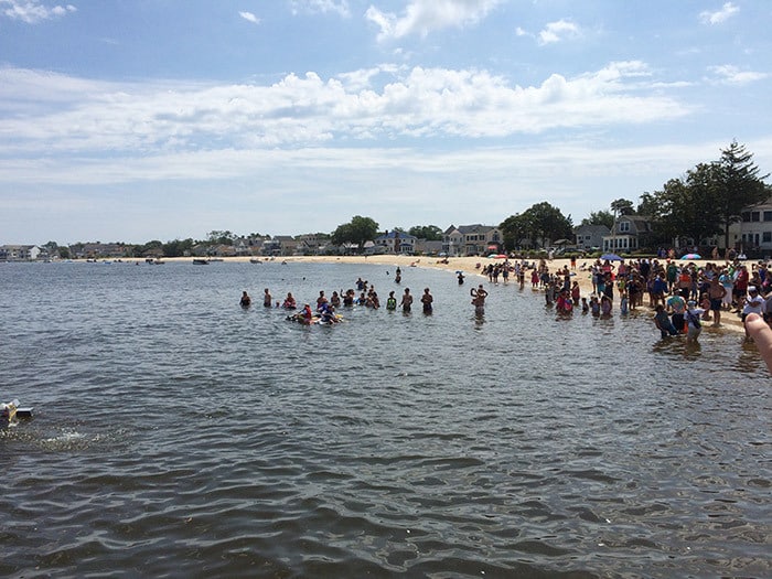 The event had been postponed a week due to a prediction of thunderstorms. When the event actually took place, it was the day after a very stormy day. It was very hot that day, so people were cooling off with ices from the beachfront concession stand if they couldn’t go in the water.