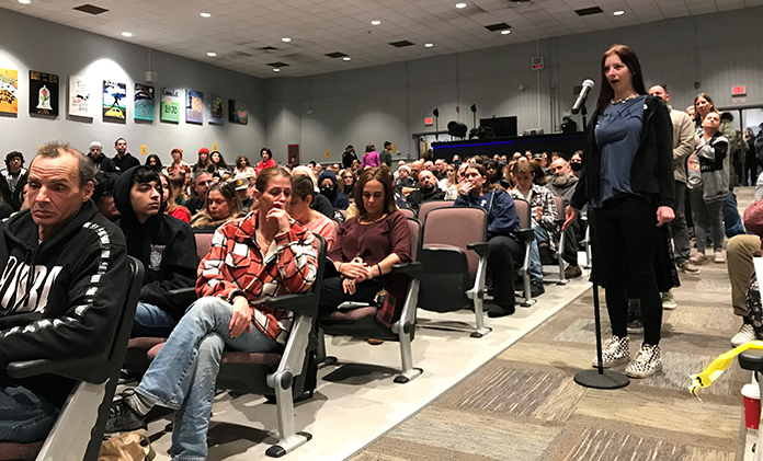 One current student said he was bullied every day and didn’t receive the help he needed from the school. He also called out the hypocrisy of some of the people in the crowd. “People in this room have bullied me and I don’t even know why you’re here.”