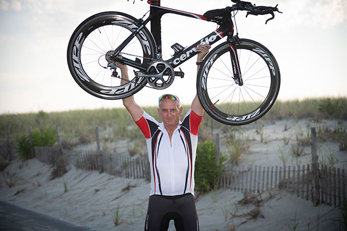 Jim Welshman, 64, rides his bike, swims, and jogs to keep in great shape. The start of his fitness journey didn’t come with a starter pistol but a more military one. His son entered the Marines in 2008. “I downloaded the boot camp training app.”
