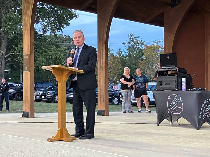 Congressman Jefferson Van Drew (R-2nd) used the stage as an opportunity to shore up support for himself. His speech contained popular GOP talking points, such as noting prosecutors being supported by George Soros; the crime in Washington, D.C.; and USAID spending money on an opera in Columbia where the main character is transgender.