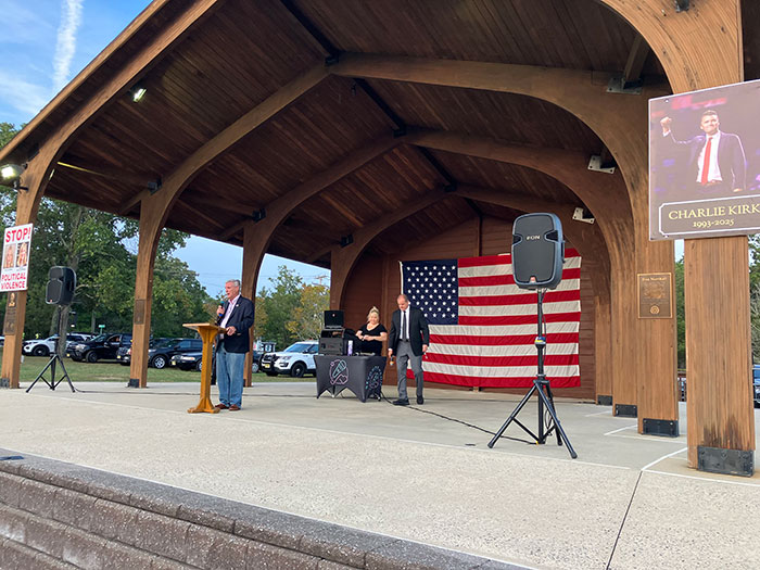 While it was a somber event, it was also a celebration of Kirk’s life, said attendee Helena DeBoer of Bayville. “It was a celebration of someone who loved Jesus Christ, someone who loved his family and someone who loved his fellow man. He gave a voice to so many young people.”