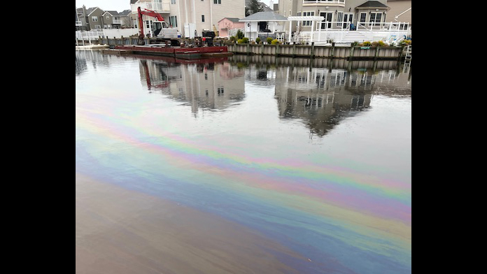 A resident called police at around 8 a.m. on April 2, saying there was an oil spill in the lagoon behind Carlyle Drive. The Bayville Fire Department also responded.