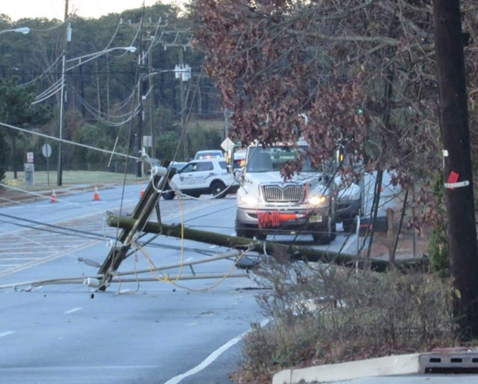 A utility pole on Forest Hills Parkway came down, according to Ocean County Scanner News. Their reporting stated that it came down on its own, and not from a crashing vehicle. Photos showed the pole on the street in a tangle of wires, with Jersey Central Power & Light crews working on the problem.