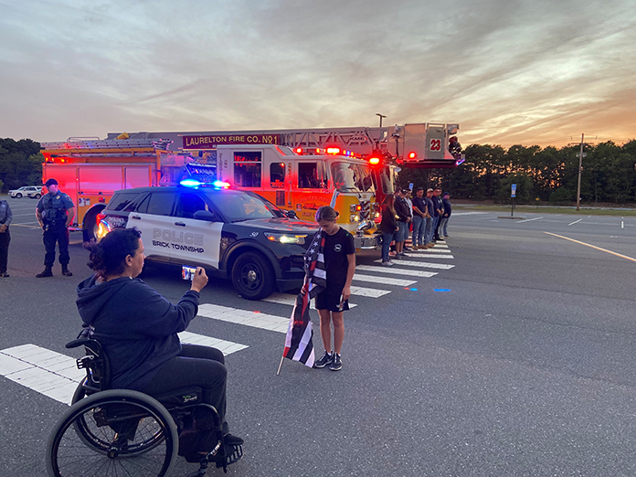 On this evening, Morgan was joined by her school principal who ran the mile with her. First responders from the Brick Township Police Department, Ocean County Sheriff’s Office, Pioneer Hose Volunteer Fire Company, Laurelton Fire Company and Breton Woods Fire Company were present supporting Morgan and her endeavors. Bright lights and sirens filled the parking lot as the firetrucks and squad cars followed Morgan on her run to honor Krampota.