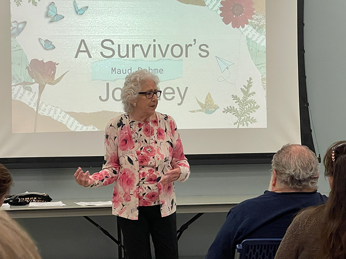Dahme began her presentation by reading a passage from “Facing Memories: Silent No More,” by Holocaust educator and survivor Dr. Robert Krell, who said child survivors lived in silence after the war because silence served them well while in hiding.