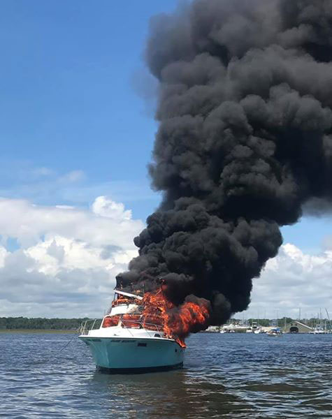 The State Police Marine Services Bureau told reporters that two people were on the boat when it caught fire, but both got off safely.