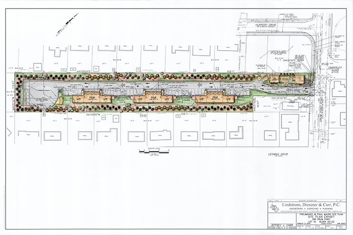 The developer has had a number of hearings for the site. Original plans called for a 175-unit self-storage facility, but it required a Use Variance and a super-majority of votes from Board of Adjustment members. The application was denied.