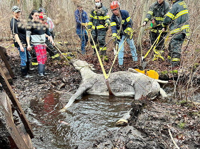 HOWELL – Multiple firefighters in Howell Township helped a struggling horse who had fell into a stream and was stuck in mud.