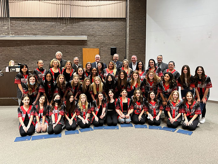The crimson clad cheerleaders of that organization once again received a high honor during a recent competition. Mayor Michael Reina presented award certificates to the members of the group. “It is my pleasure to introduce each one of these young ladies for their wonderful, outstanding accomplishments.