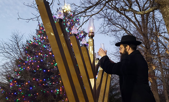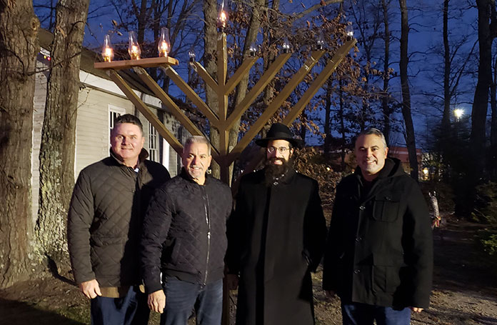The outdoor event held on December 20 on the grounds of the municipal building was hosted by Rabbi Shmuel Naparstek and sponsored by Bat Shalom Hadassah, Jackson Chabad, Westlake Yiddish Club, Shalom Club of Winding Ways and South Knolls and Metedeconk.