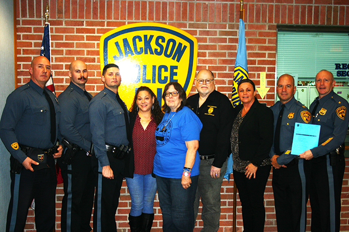 Kanterman Foundation President Stan Kanterman joined his wife and Foundation treasurer Tina Kanterman along with Foundation volunteer Toni Tedesco in a recent donation presentation at the Jackson Police Department.