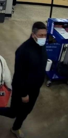 The suspect’s vehicle is a Mercedes Benz SUV with a California registration. The suspect was seen on a store security camera using a credit card from the burglary.
