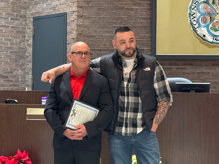 Sgt. Michael Grochowski and Lt. Fred Meabe were both honored during this special event which noted their last day of duty with the force. Alongside many of their fellow officers and friends were public officials, Mayor Jennifer Kuhn, Council President Mordechai Burnstein and Councilman Ken Bressi.
