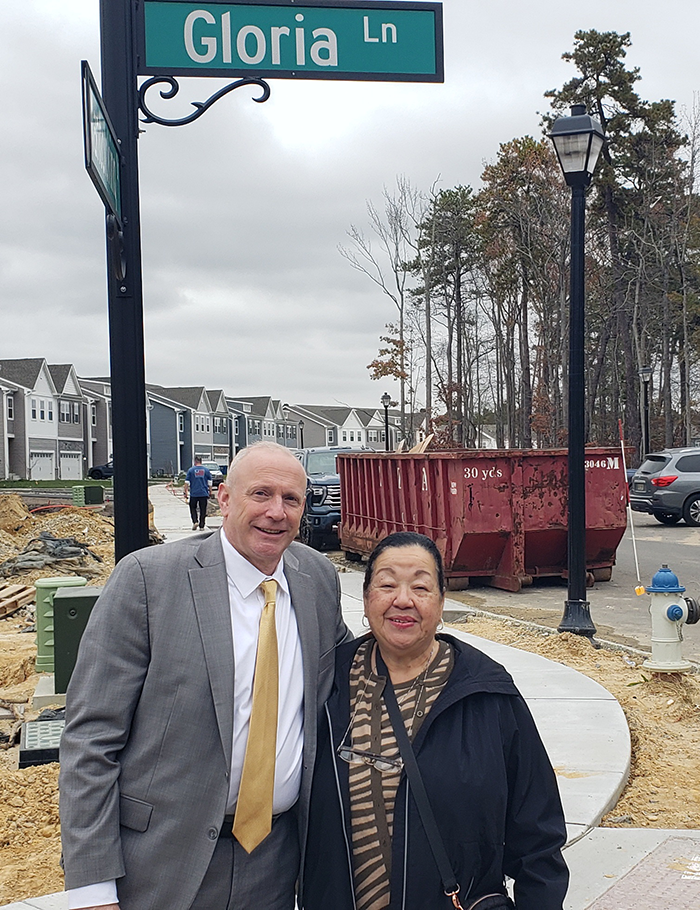 Club at Jackson 21 is “a town home development not single-family home. When Peter was talking to the builders they were talking about (street) names and that is when they came up with it. The other street names are from shore towns like Brielle and Sea Girt so Gloria’s Lane really stands out,” her daughter added.