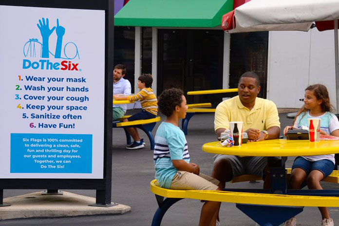 - Safety messaging and reminders will be displayed on Six Flags’ website, and in newsletters.