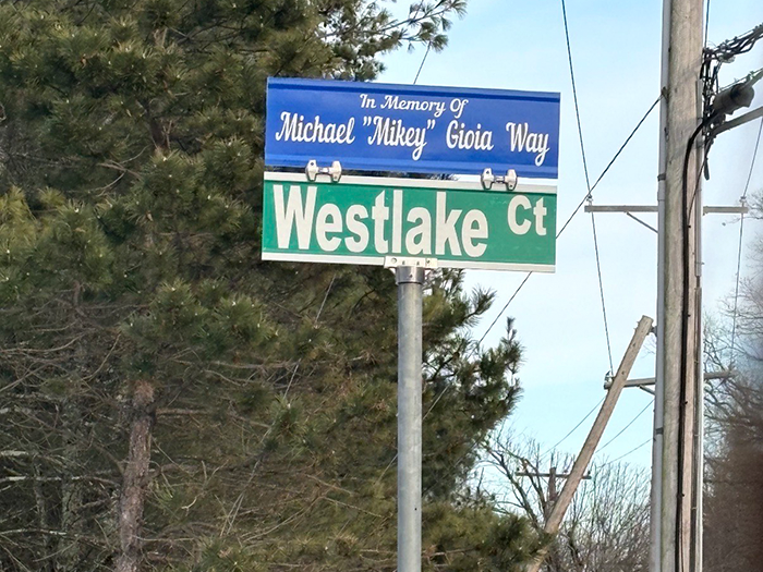 The township permanently renamed Westlake Court to honor the 16-year-old high school student who tragically died in a car crash. A new sign now names the street Michael “Mikey” Gioia Way.
