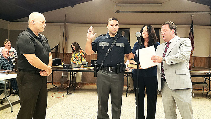 New police officer Brian Henry was sworn in as the newest member of the Borough police department by Municipal Attorney Ian Goldman as he was surrounded by family members. Chief Matthew Kline and fellow members of the department were observing the ceremony held early on at the meeting.