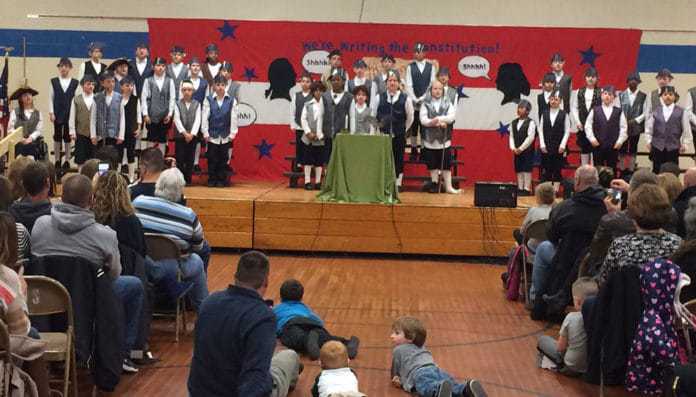 WHITING – Whiting Elementary School fifth graders perform the play “Shhh! We’re Writing the Constitution!” before family and friends.