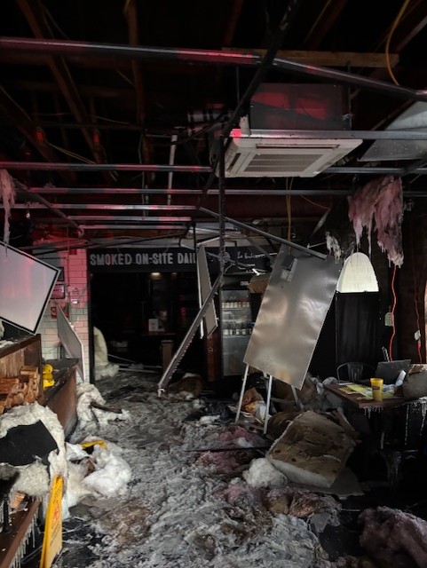 Both Dickey’s Barbeque Pit and Whiting Bar & Spirits sustained significant damage and were declared unsafe for occupancy. No injuries were reported.