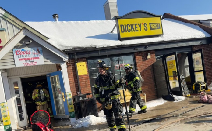 Officers from the Manchester Township Police Department were called around 2:25 p.m. on February 7 to Dickey’s Barbeque Pit at 108 Lacey Road after smoke was reported coming from the ceiling. Police arriving on scene found active flames and heavy smoke venting from the side of the building.