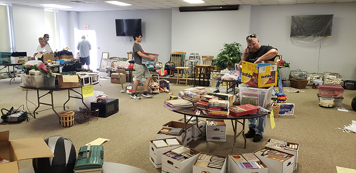 Members of the Proving Ground Church gathered late in the afternoon of Aug. 7 to assemble and arrange items for a special flea market. They didn’t have to worry, however, about marking prices on any of the items – they were all offered up for free as a means to help the community during the ongoing pandemic which has hit hard financially for many people.