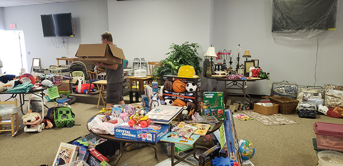 Proving Ground Church Administrative Asst. Nicole LeBoeuf said of the event that due to the potential for rain, the flea market was moved indoors as a precaution. “We set up inside so we didn’t have to worry about the rain. We are following all the safety protocols with masks and social distancing inside the building.”