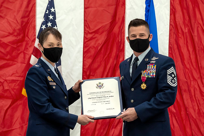 LAKEHURST – Joint Base -McGuire-Dix 87th Air Base Wing Command Chief Master Sergeant Tony B. Jenkins officially retired from the United States Air Force recently after a successful 25 years of service.