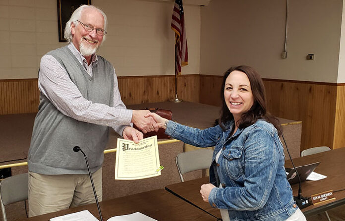 LAKEHURST – Borough Council President Steven Oglesby presented Ocean County Librarian Erin DeLucia a proclamation for National Library Week.