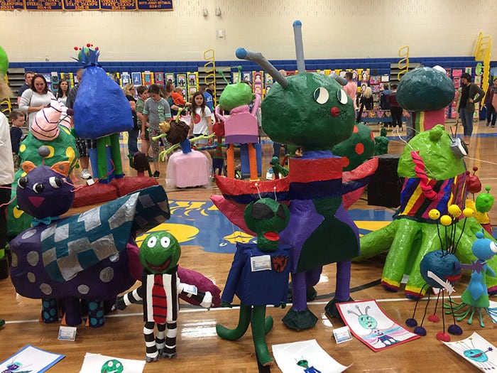MANCHESTER – “I did this,” a boy said, as he pointed to his artwork on the wall. His was among many “hand drawn monsters” that were part of his fifth grade class.