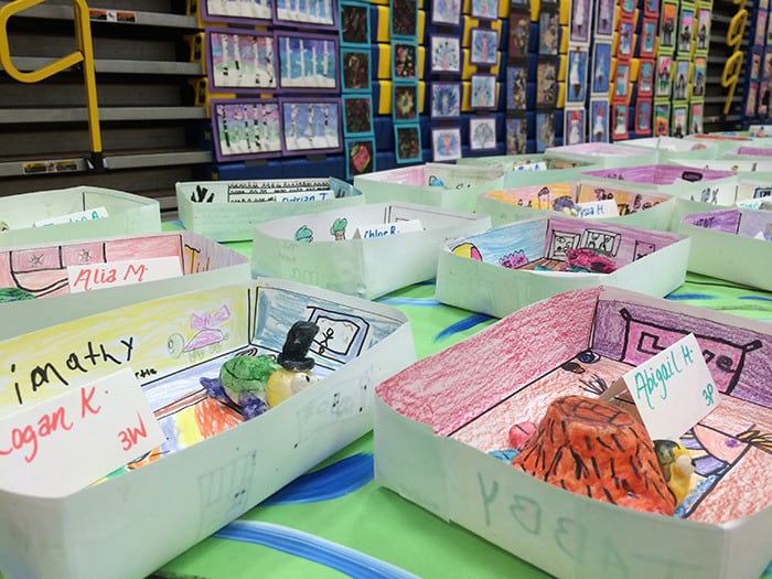 One side of the building was for the younger kids, and the other side was for older students. Many pieces were grouped together by theme or assignment.