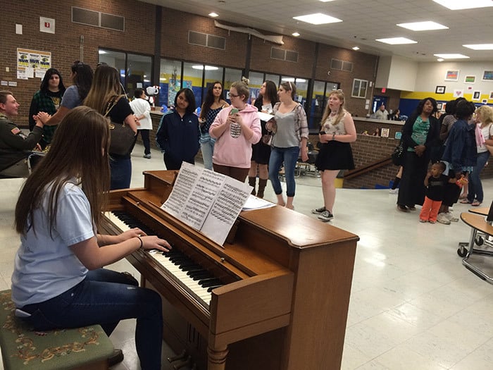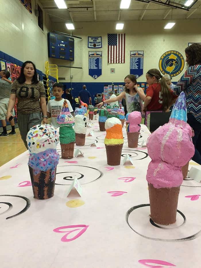 A senior showcase was set up where several students were given space to show off a selection of their work. They hung out with their work, greeting passersby. The high school Drama Club performed an act from “How To Succeed In High School Without Really Trying.” There were also vocal performances and the high school band put on short shows.