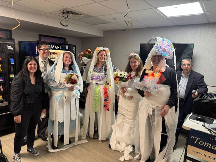 She added “on Wednesday we had a reception and we had a potato bar and mocktails again for that and we had the staff from each unit create a bride out of toilet paper and the residents voted on who their favorite bride was and whoever won, won a pizza party and our third floor won the pizza party.”