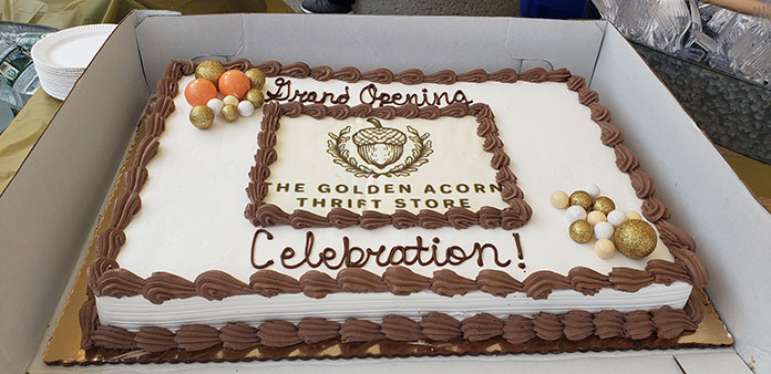 Owner Deborah Sorce joined her husband, a volunteer at the store and several volunteer staff members for the event that featured a large cake with the store’s logo.