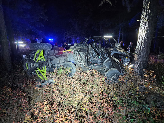 The crash happened around 10:10 p.m. near the intersection of Pasadena Road, where officers found one black Polaris UTV with heavy front-end damage after striking a tree and a green Polaris UTV overturned behind it, according to Manchester Township Police.