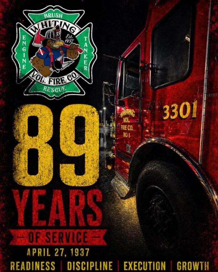WHITING — The Whiting Volunteer Fire Company No. 1 is marking 89 years of service, reflecting on a legacy that began on April 27, 1937, with a single fire truck and a small group of dedicated residents.