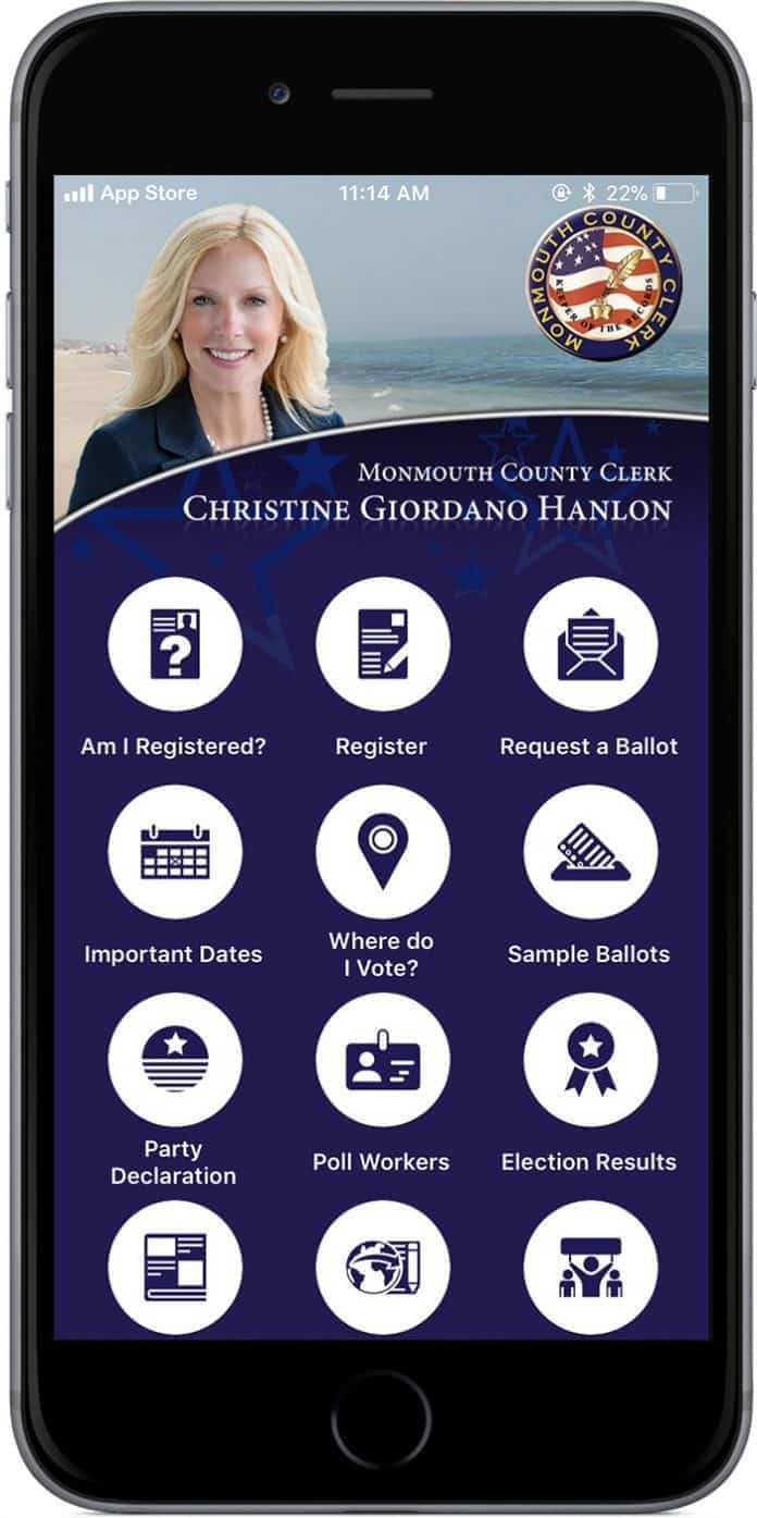 FREEHOLD – County Clerk Christine Giordano Hanlon recently announced that the free mobile app “Monmouth County Votes” has recently been updated and can be downloaded from the Apple or Google Play store, just in time for Election Day.