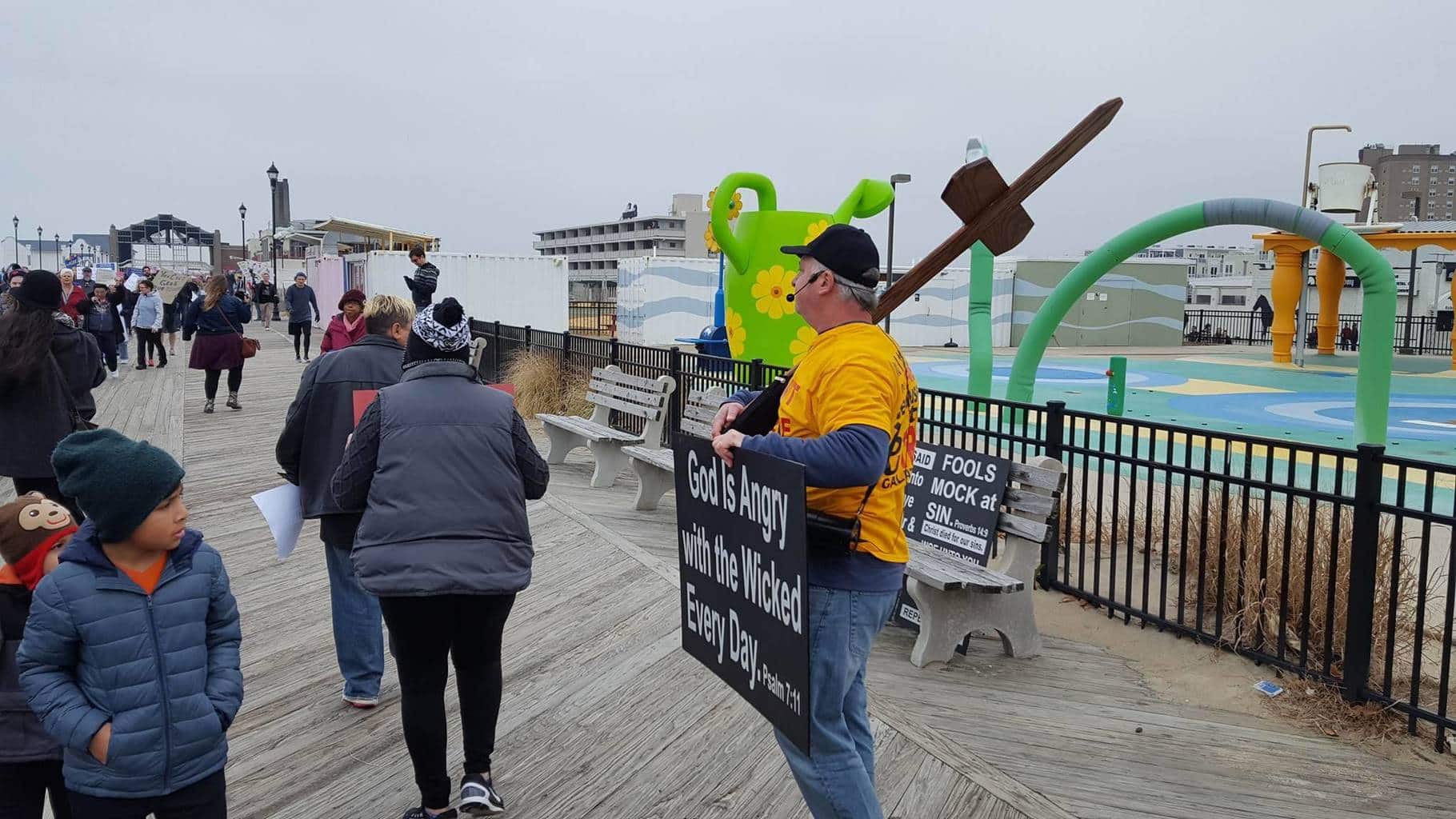 There was at least one dissenting voice observed on the borough boardwalk in the form of a man with a bullhorn carrying multiple signs who attempted to heckle the marchers proclaiming that “God was angry with those who are evil” which he directed at the LGBT community and those who are pro-choice. Despite the difference of opinion and a few remarks exchanged the protest remained peaceful throughout the three hour event.