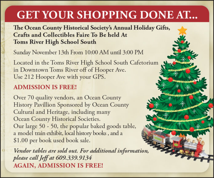 TOMS RIVER – The Ocean County Historical Society invited the public to attend their annual Holiday Gifts, Crafts and Collectibles Faire. Admission is free!
