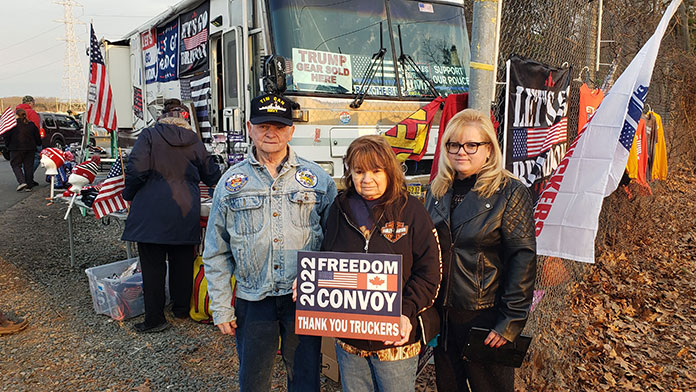Among those present were the Havens family of the Cream Ridge section of Plumsted. Alton Havens joined his wife Elizabeth and daughter and were carrying signs as trucks, vans, vendor vehicles, cars and pickups entered the Speedway parking lot. “We want to back up the truckers.”