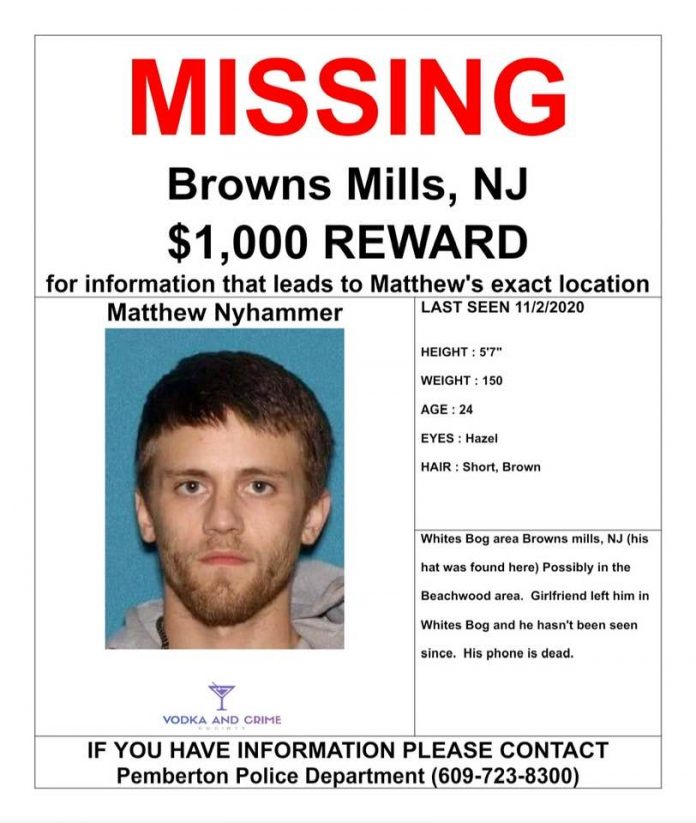 The missing persons poster stated that his girlfriend dropped him off in the Whitesbog area but he has not been seen since. His phone has been shut off.